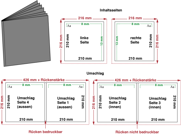 Innenteil Einzelseiten: 216 x 216 mm