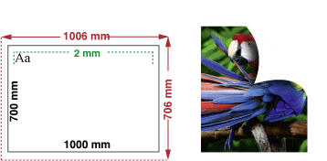 Unsere Druckerzeugnisse werden größer als das Endformat gedruckt. Damit es nicht zu weißen Rändern (Blitzern) kommt, müssen Bildelemente die bis zum Rand reichen, 3 mm größer angelegt werden. Dieser Bereich wird nach dem Druck abgeschnitten.